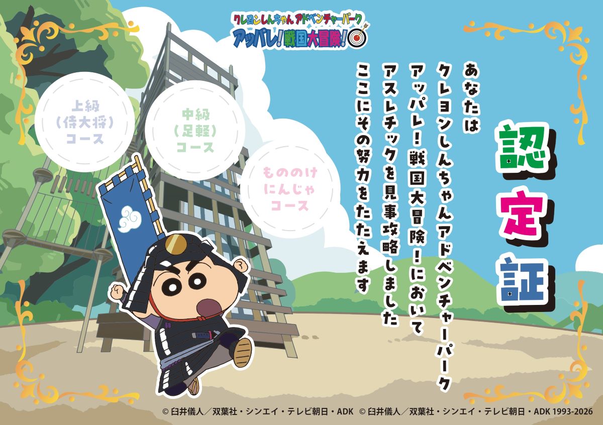 ニジゲンノモリ「クレヨンしんちゃんアドベンチャーパーク」 キミはこの挑戦をクリアできるのか!?「アッパレ!戦国大冒険!」足軽(中級)コース 2026年1月17日(土)リニューアル!