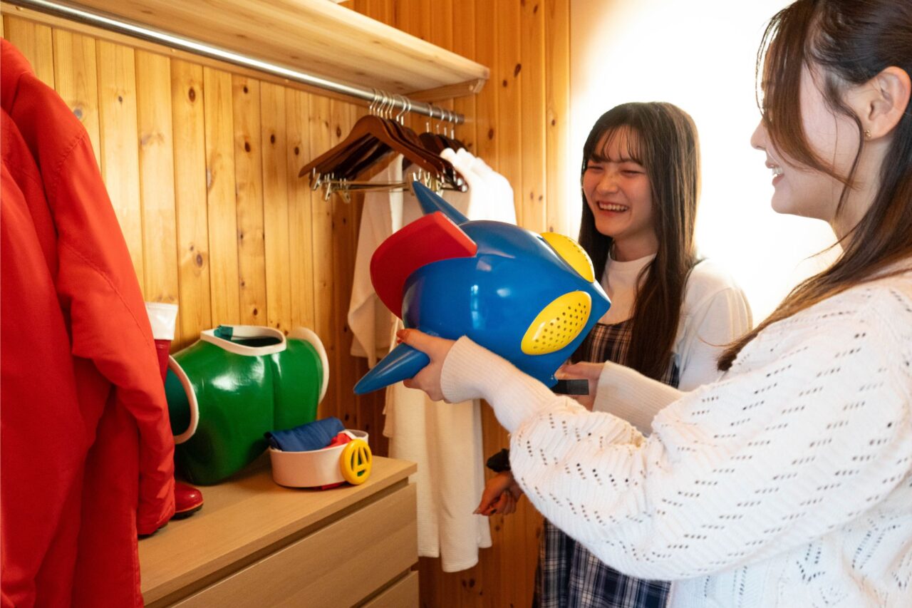 コラボルーム「オラのコクーン」では、しんちゃんのアイコニックなアイテムやキャラクターが至る所に!部屋の内装はもちろん、シーツやカーテン、さらには家具まで、全てがクレヨンしんちゃん一色。まるでしんちゃんの世界に飛び込んだような感覚を味わえます。