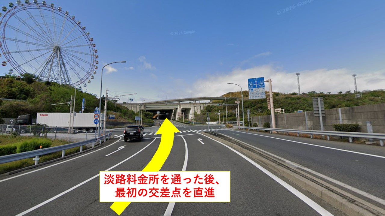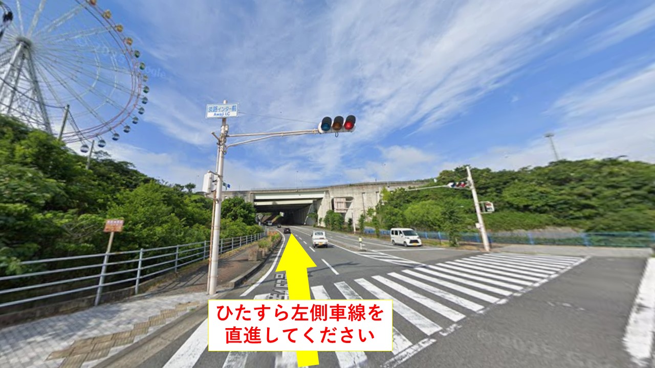①淡路ICを降りて最初の信号を直進