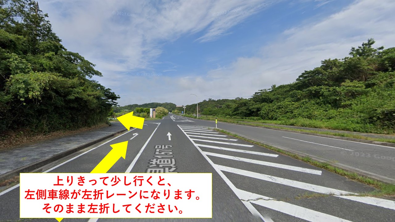 坂を上りきって少し行くと、左側車線が左折レーンになります。そのまま左折した先がニジゲンノモリ(県立淡路島公園F駐車場)です!