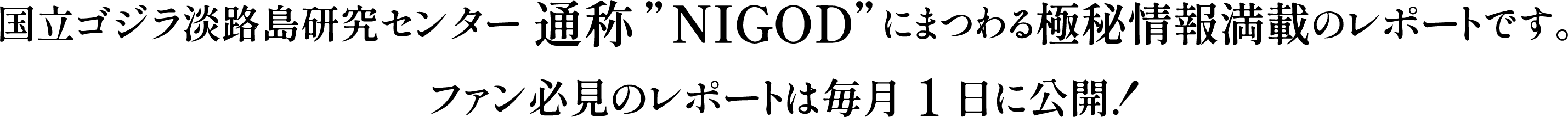 NIGODからの公式発表によると、その研究の開始はなんと大正時代にまで遡るという。つまりこの国は100年も前から「怪獣」の存在を認識し、その研究をしていたということになるのだ。