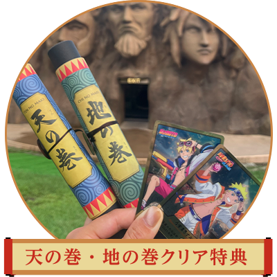 謎解きキットを確認しながら、火影岩周辺や、地の巻エリア内でヒントを探し、ストーリーを進めよう!※体験時間は1時間程度です。