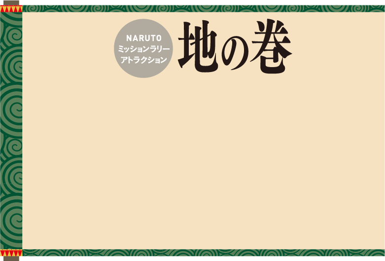NARUTO×BORUTO忍里エリア内の巻物お渡し所で謎解きキットを受け取ろう!前売りチケットを購入された方は、スタッフにQRコードを提示してください。